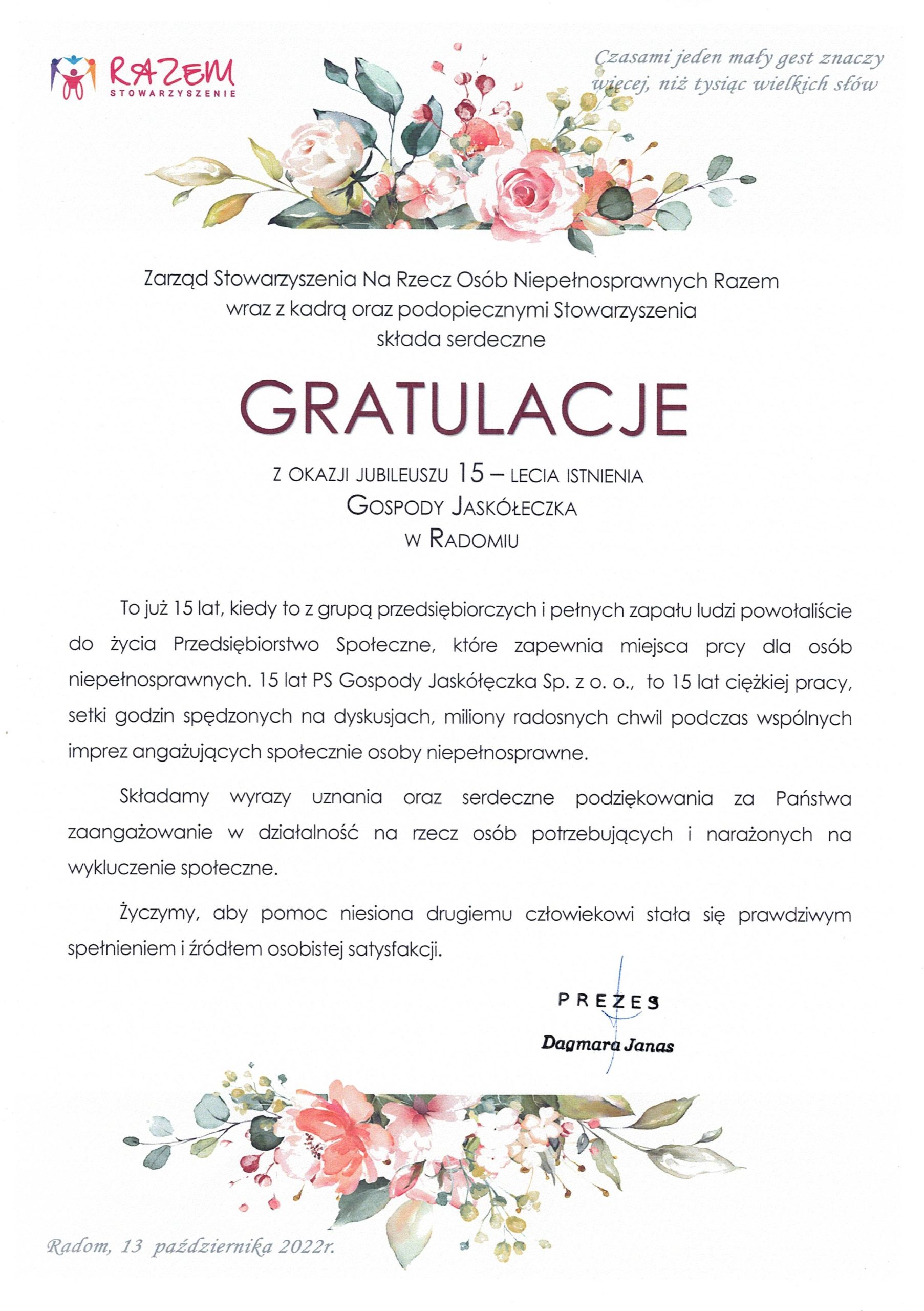 … – Jubileusz Gospody Jaskółeczka