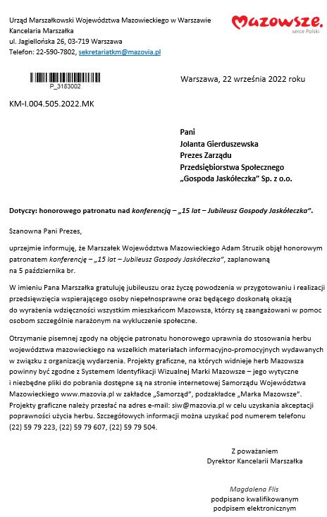 Marszałka Samorządu Województwa Mazowieckiego